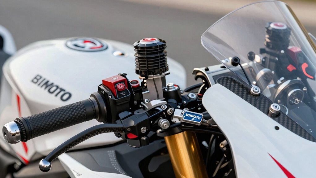 Suspension setup is another essential element contributing to that revered steering feel. Bimota’s approach to suspension isn’t just about comfort; it’s about performance. The suspension components are calibrated to complement the chassis design perfectly, allowing for a seamless connection between the bike and the road. As you push the limits on the track, you’ll find the suspension absorbs imperfections while still delivering the feedback you crave. This balance guarantees you maintain control even at high speeds, enhancing your overall track performance. Additionally, the handling dynamics are carefully engineered to maximize rider confidence and feedback, further elevating the overall experience.