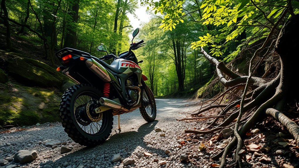You’ll notice CFMoto stands out with its innovative suspension technology and ergonomic design, making trail rides smoother and more comfortable. Their advanced suspension absorbs shocks effectively, enhancing stability on rough terrain, while the ergonomic design guarantees you stay comfortable during long adventures. These innovations give you better control and reduce fatigue, setting CFMoto apart from competitors by delivering a more reliable, enjoyable trail experience.