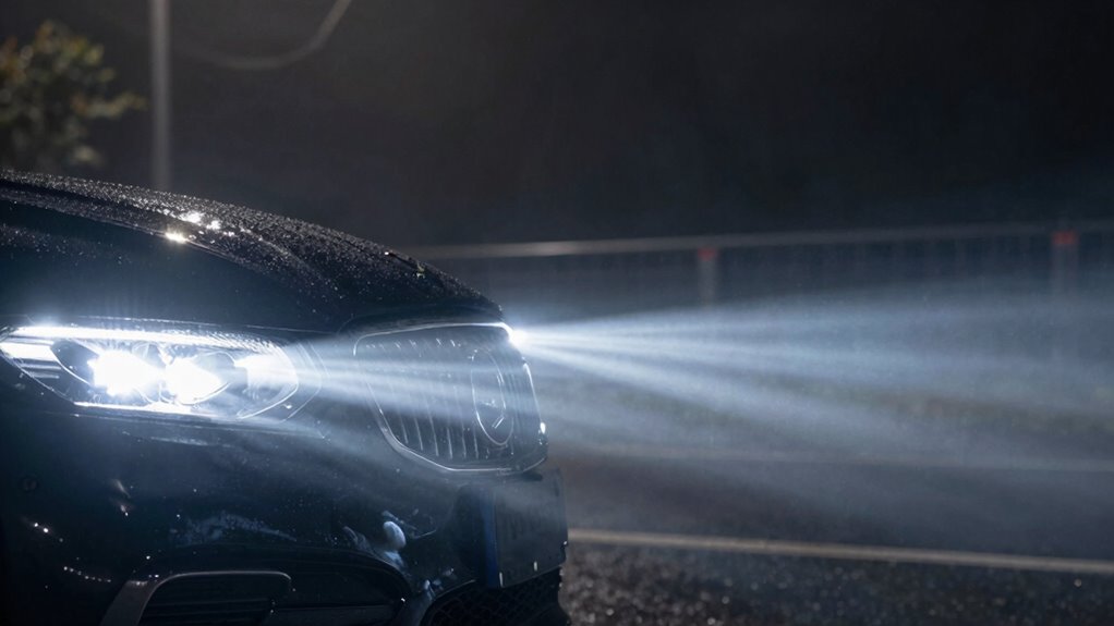 Weather impact can turn your light aiming into a game of hide and seek. Rain, fog, or snow scatter and diffuse your auxiliary lights, making them less effective and potentially misaligned. You should regularly perform light adjustment checks after any weather change, especially if conditions are severe. Keep your lights aimed properly to avoid blinding others and ensure safe visibility, regardless of the weather’s influence on your outdoor adventures.