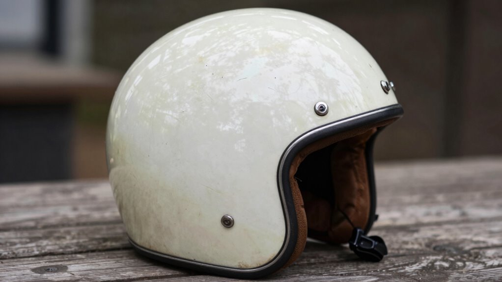 Think of your helmet as a guardian that wears out with time, no matter how well you care for it. Its protective powers weaken like a fading shield, leaving you vulnerable. Regularly check for signs of deterioration and replace it when needed. Staying proactive keeps your safety net strong, ensuring you’re always ready to face the unexpected. Remember, a helmet’s expiration date isn’t just a suggestion — it’s a reminder to keep your safety armor intact.