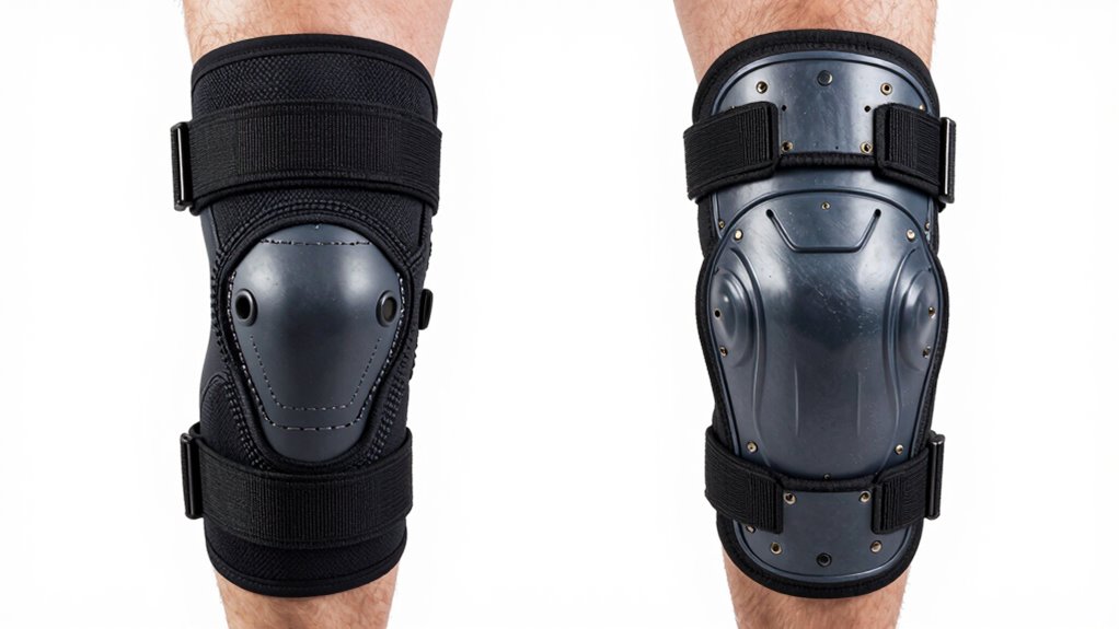 You’ll find that material differences markedly impact protection levels; for example, studies show that flexible materials improve comfort and range of motion by 30%. With knee guards, material flexibility enhances breathability, keeping you cool during activity, but may compromise durability. Conversely, durable materials in knee braces offer better support, though they might reduce flexibility. Choosing the right balance depends on your activity needs and injury risk.