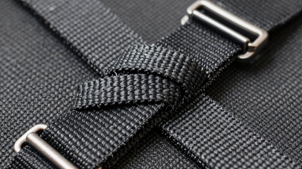 Real-life examples demonstrate just how effective crash-proof strapping can be in ensuring safety during transport. You’ll see this in action when metal fittings are used to secure heavy loads, preventing shifting or slippage. In one case, a logistics company relied on a specialized knot pattern combined with strategic strap placement to distribute load weight evenly. This load distribution minimizes stress on individual straps and fittings, reducing failure risks. The use of high-quality metal fittings guarantees a robust connection, even under sudden jolts. These real-world examples show that proper strap tension, combined with durable fittings and thoughtful load distribution, can withstand harsh conditions and sudden impacts. Such practices keep cargo secure, protecting both goods and personnel during transit.