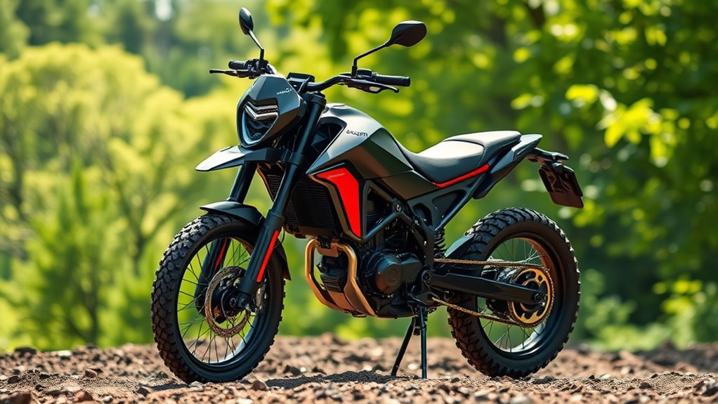 Ducati’s vision for hybrid trail bikes is to revolutionize off-road riding by combining electric tech with high-performance engineering. You’ll experience instant torque, silent operation, and improved durability that handles tough terrains with ease. These bikes are purpose-built for adventure, offering safety features like regenerative braking and advanced sensors. They are designed to be lightweight, agile, and sustainable—transforming your off-road experience. If you continue exploring, you’ll discover how Ducati is shaping the future of trail riding.
