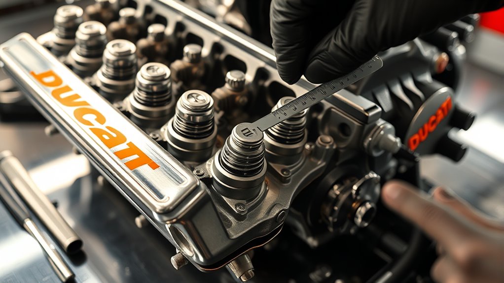 Keeping your Ducati’s valve clearances in check is like tuning a fine instrument; neglect it, and the symphony falls out of sync. I once watched a rider struggle with engine misfires until he realized a simple valve adjustment restored smoothness and power. Regular maintenance isn’t just routine—it’s the key to liberating your bike’s full potential. Stay vigilant, and your Ducati will run like a well-oiled machine, ready to perform every time you hit the road.