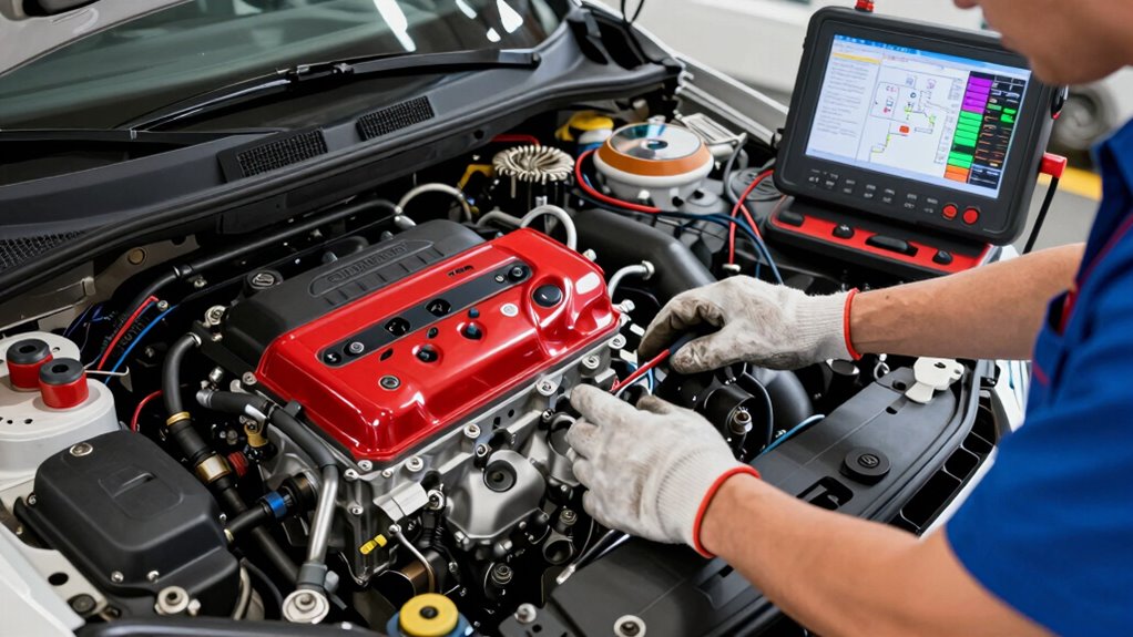 You should inspect your spark plugs for signs of wear, fouling, or damage, as these can prevent proper ignition. Equally important is verifying the fuel system‘s integrity, including fuel delivery and pressure, to guarantee the engine receives the correct mixture. Addressing issues in either component can resolve starting problems effectively. Additionally, employing a systematic testing process can help identify underlying problems more efficiently. Ensuring that your fuel system components are functioning properly can prevent many starting issues related to fuel delivery, and understanding the role of diagnostic flow helps streamline troubleshooting steps. Regularly inspecting engine sensors can also play a critical role in diagnosing starting difficulties.