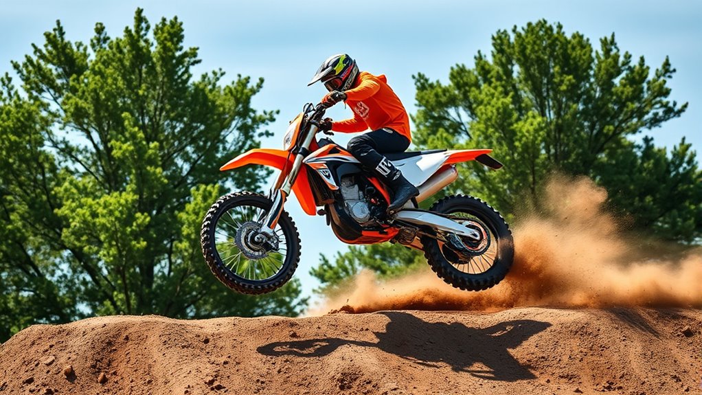 You stay ahead of emerging motocross technology by constantly integrating innovative materials into your bikes, making them lighter and more durable. You focus on improving rider ergonomics, ensuring a comfortable and responsive ride. Husqvarna invests in research and development, collaborating with top engineers and riders to bring cutting-edge innovations to market quickly. This proactive approach keeps you at the forefront of motocross, enabling better performance and a competitive edge.