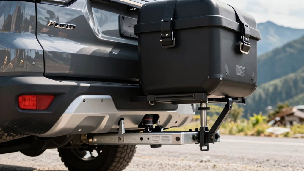 Before using a hitch carrier, you need to verify its weight ratings and match them to your hitch receiver’s capacity. Start by identifying the maximum gross trailer weight and tongue weight listed on your hitch label, then ensure the combined load stays within these limits. Proper weight distribution is key to maintaining stability and safety. If you keep these guidelines in mind, you’ll avoid overloading hazards—continue to learn more about keeping your towing setup safe and reliable.