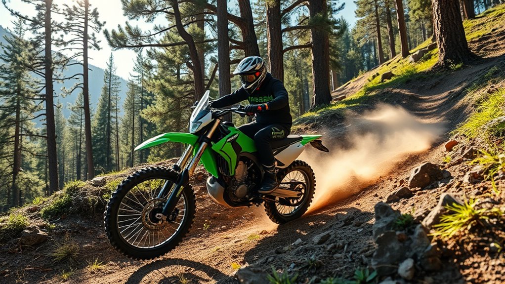 Imagine taking your Kawasaki trail bike through a rugged mountain path, feeling the seamless balance of innovation and performance. Kawasaki’s trail design advancements, like their lightweight chassis and enhanced suspension, make every adventure smoother and more thrilling. For example, picture tackling a challenging trail where other bikes struggle—your Kawasaki handles it effortlessly. With these innovations, you’re not just riding; you’re conquering new terrains. Get ready to redefine your trail experience and push the limits of what’s possible.