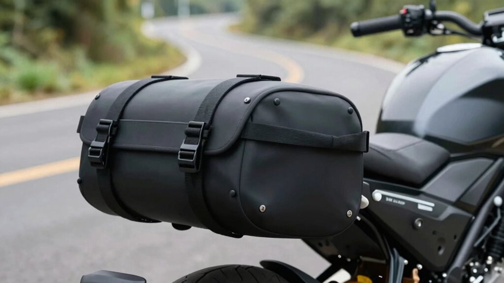 When it comes to a tank bag that moves with you on the road, opting for flexible and durable materials makes a significant difference. The right tank bag materials improve maneuverability factors by allowing the bag to adapt to your riding position without restricting movement. Look for options like reinforced nylon or waterproof fabrics that resist tearing and weather damage while remaining lightweight. These materials bend and flex with your body, preventing unnecessary rigidity that could hinder standing or leaning. Durability ensures your bag stays intact through rough terrain and frequent use. Additionally, selecting materials with weather-resistant properties can help protect your gear from rain, sun, and dust during your rides. By choosing flexible, durable tank bag materials, you enhance your overall riding experience, maintaining ease of movement and comfort as you navigate different terrains and riding conditions.