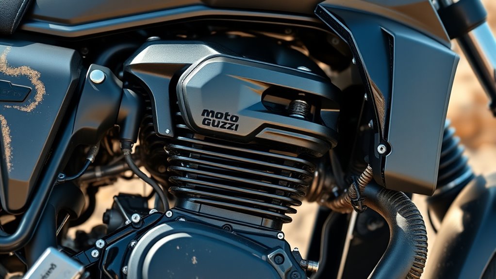 Have you ever wondered what makes Moto Guzzi’s engines stand out in the world of motorcycles? It all comes down to their unique design approach, especially when tackling rugged terrain. One of the key factors is how their engines handle engine cooling. Unlike many other bikes that rely on liquid cooling systems, Moto Guzzi often employs air-cooled or hybrid cooling techniques. This design choice isn’t just about simplicity; it’s about durability and reliability under tough conditions. When you’re riding off-road or on uneven paths, the engine faces intense heat from prolonged use and challenging environments. Moto Guzzi’s air-cooled engines dissipate heat efficiently, thanks to their large surface area and strategic fin design. This ensures the engine remains cool even during extended rides in demanding conditions, preventing overheating and maintaining consistent performance. By keeping the engine cool, Moto Guzzi helps you avoid breakdowns and reduces the need for complex maintenance, which is especially essential when you’re miles away from service stations. Additionally, air-cooled engines tend to have fewer components that can fail, making them more reliable in rugged settings.