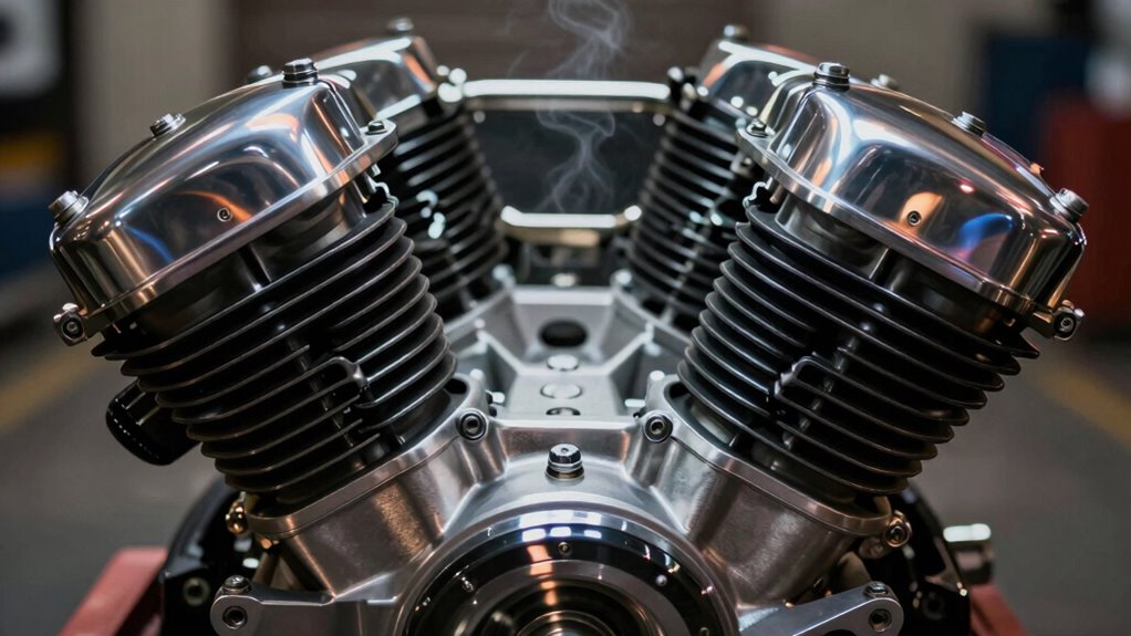 Transverse V-twin engines are cool because they deliver power efficiently while enhancing stability and handling. With their low center of gravity, you’ll feel more confident leaning into turns. Plus, the configuration minimizes vibrations, ensuring a smoother ride—perfect for long journeys. Their compact design allows for better weight distribution and easier cooling, while the distinctive rumble adds to the machine’s allure. If you’re curious about the finer details, there’s a lot more to discover!