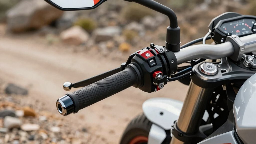 Even after adjusting throttle cable tension, handling issues may persist due to improper riding position. Your body alignment influences weight distribution, leverage, and control feedback, which directly affect throttle response. An overly upright or forward-leaning posture may cause excessive front-end load, reducing precision and increasing sensitivity to minor throttle inputs. Conversely, a slouched or rearward position can decrease front grip, making the bike feel sluggish or unresponsive. To optimize handling, ensure your riding position maintains a balanced weight distribution, with elbows slightly bent and wrists neutral. This posture enhances tactile connection with the controls, allowing for more refined throttle modulation. Adjust your riding stance to maximize control, reduce fatigue, and improve throttle responsiveness, especially on loose terrain where precise inputs are critical.