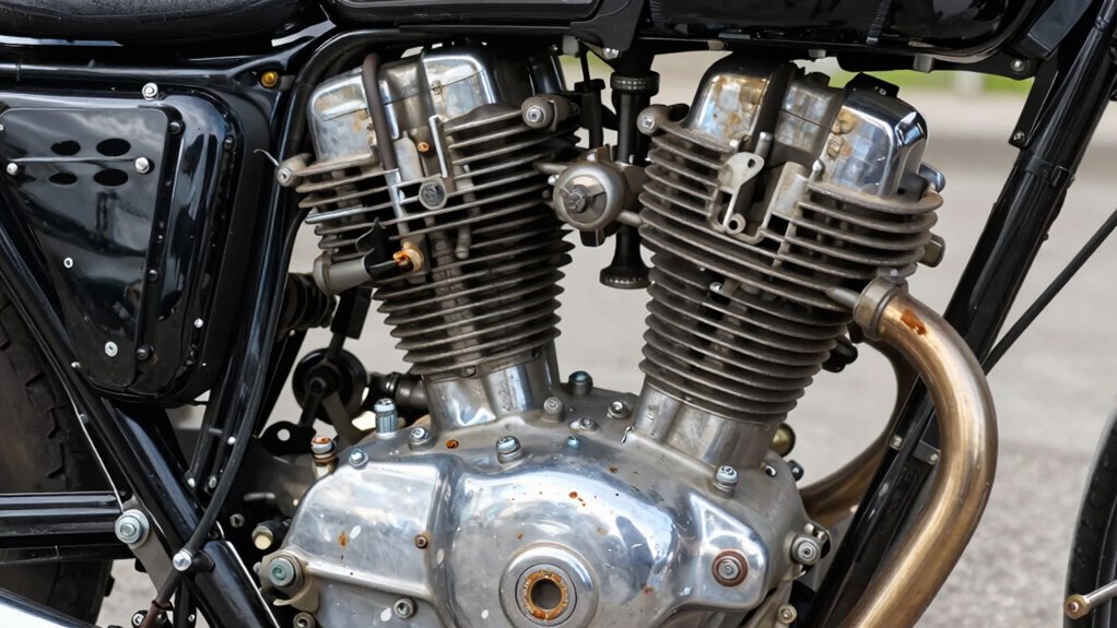 Vibration can subtly influence not just bolts but other fasteners, too. Over time, you might notice a bit of fastener corrosion or looseness, especially if damping isn’t ideal. To keep everything secure, use good vibration damping techniques and consider applying threadlockers where needed. This proactive approach helps prevent issues, ensuring your Norton runs smoothly and keeps those fasteners snug, reducing the chances of unexpected setbacks.