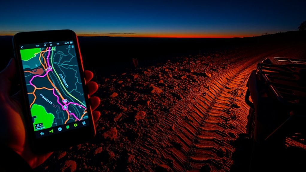 Polaris Offroad Map Overlay Systems enhance your adventure by providing real-time, detailed navigation directly on your vehicle’s display. As you navigate rugged terrains, having accurate and reliable guidance becomes essential. These systems use advanced GPS technology to deliver precise positioning, guaranteeing you stay on course even in remote areas where cell signals may be weak. The GPS accuracy is a significant advantage, as it minimizes errors and helps you avoid getting lost, allowing you to explore with confidence. Whether you’re crossing open fields or winding through dense forests, the system’s pinpoint location data keeps you oriented, so you can focus more on the thrill of the ride and less on worrying about directions.