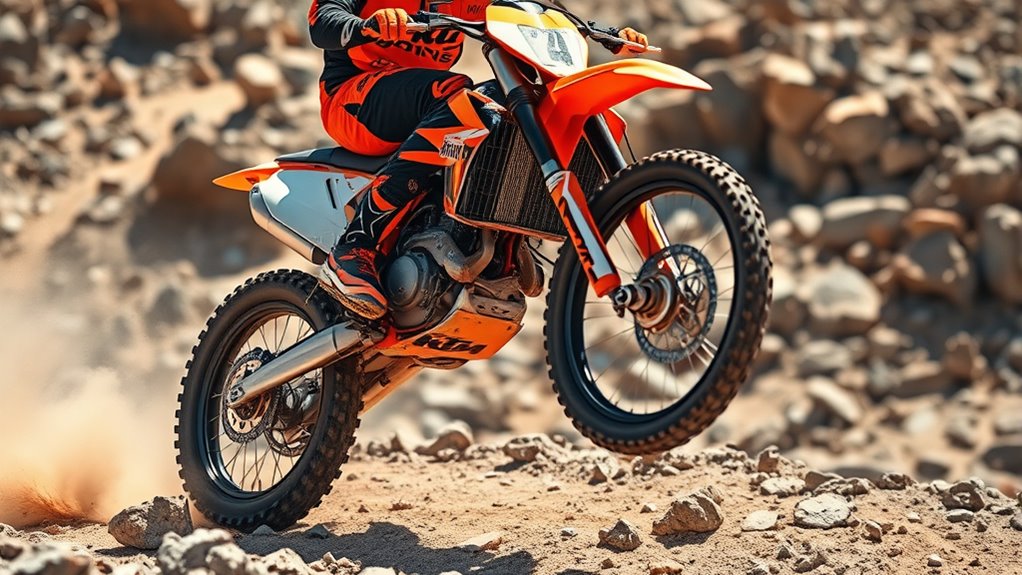 So, next time you’re tearing through the dirt, remember KTM’s over-rev protection is like a vigilant guardian, stopping your engine from screaming its lungs out. It’s your bike’s silent shield, whispering, “Hold on,” before chaos strikes. With this clever safety net, you can chase adrenaline without risking a catastrophe. Think of it as your trusty sidekick, always watching your back and keeping the adventure roaring smoothly, mile after mile.