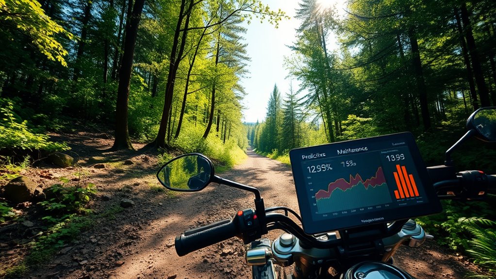 Imagine your trail bike equipped with advanced sensors that monitor its components in real-time. You use sensor integration and data analytics to predict issues before they happen. This technology includes vibration sensors, temperature monitors, and GPS tracking, which send data to a central system. The system analyzes trends, alerting you to maintenance needs early, preventing breakdowns. This proactive approach enhances safety and keeps your trail adventures smooth and worry-free.