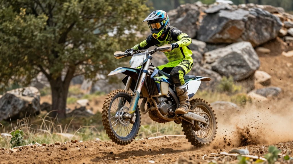 Stabilization features are vital for capturing smooth, professional-quality footage during intense dirt bike rides. Electronic Image Stabilization (EIS) reduces camera shake, guaranteeing your videos stay steady even on rough terrain. Six-axis gyro stabilization technology compensates for rapid movements, keeping footage clear during jumps and sharp turns. Advanced stabilization minimizes vibrations, allowing you to record without jitters or blurriness, which means less editing later. Cameras with built-in stabilization help with better framing and eliminate shaky footage, enhancing the overall viewing experience. These features are essential for capturing dynamic, action-packed moments without sacrificing quality. When choosing a 4K action camera, prioritize models with effective stabilization to guarantee your footage remains smooth, stable, and professional-looking, no matter how intense your ride gets.