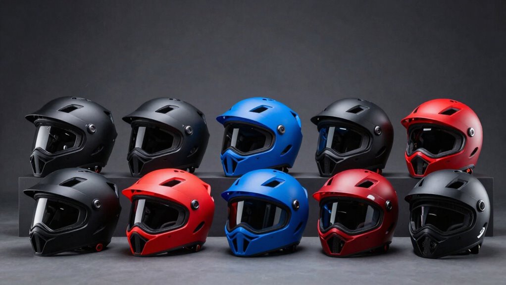 Choosing an adventure helmet with an internal sun visor means paying close attention to safety certification standards, as they directly influence the helmet’s ability to protect you during a crash. Certifications like DOT and ECE ensure helmets meet strict impact protection and safety requirements. DOT, issued by the US Department of Transportation, mandates rigorous testing for crashworthiness and durability, ensuring the helmet can withstand significant impact forces. ECE approval, common in Europe, requires helmets to pass impact absorption, retention system strength, and field-of-view tests. When shopping, always verify that your helmet bears an official safety certification. This verification guarantees the helmet has been tested and meets recognized safety standards, giving you confidence that it will perform effectively in an accident and keep you protected on your adventures.