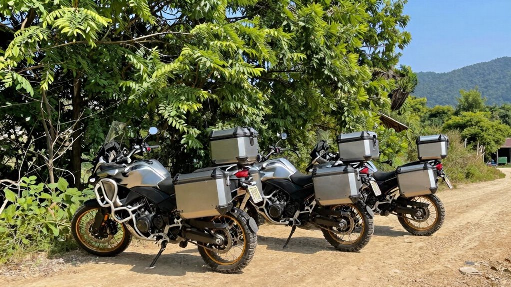 Choosing the right aluminum pannier set balances durability with style, much like the rugged terrain contrasted by a sleek motorcycle. While some prioritize size and waterproof features, others value lightweight design or compatibility. Ultimately, it’s about finding that perfect harmony between function and form. After all, the right panniers don’t just carry your gear—they elevate your adventure, proving that resilience and elegance can indeed go hand in hand on every journey.