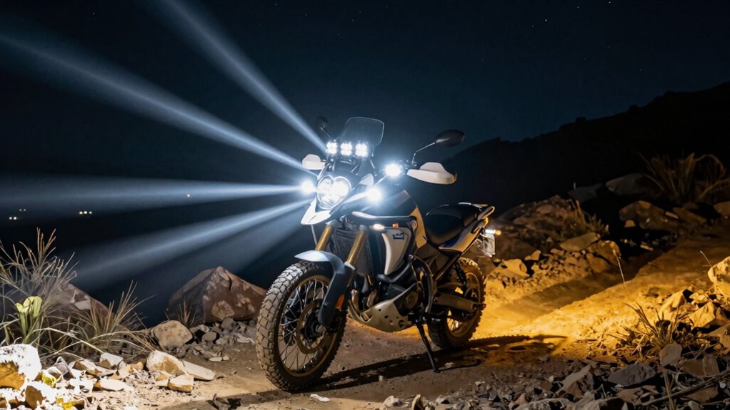 Typically, adventure motorcycle LED lights last around 30,000 to 50,000 hours, depending on their quality and usage. I’ve found that high-quality LEDs tend to be more durable and maintain brightness over time. Proper installation, avoiding moisture, and regular maintenance can extend their lifespan. If you choose reliable brands and take care of them, you’ll get years of excellent illumination on your adventures, making your riding safer and more enjoyable.