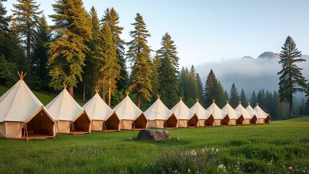 If you’re looking for the best canvas bell tents for camping in 2026, I’ve found some excellent options that combine durability, size, weather resistance, and easy setup. From models with stove jacks for warmth to spacious tents with multiple windows for ventilation, there’s something for everyone. Whether you’re camping solo or with family, these tents deliver comfort and performance across seasons. Stick around to discover the top picks that will elevate your outdoor adventures.