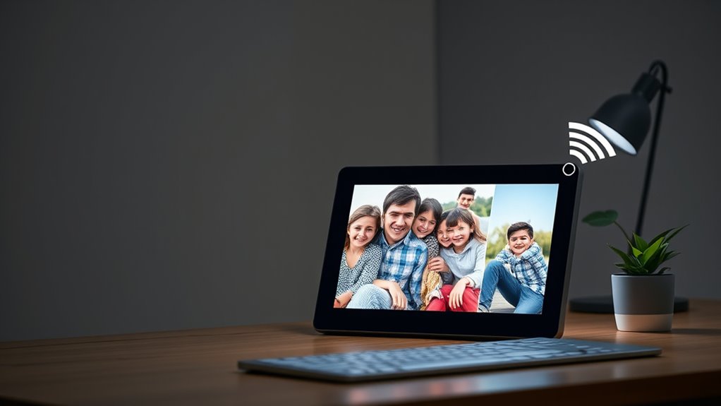Choosing a digital photo frame with email capabilities is like opening a window to your cherished memories, allowing them to drift seamlessly into your loved ones’ lives. Whether you prefer a sleek 10.1-inch display or a larger 15.6-inch screen, these frames make sharing effortless and instant. Remember, the right frame isn’t just a device—it’s a bridge connecting hearts through the timeless language of photos. Let your memories flow freely, like a gentle stream of connection.