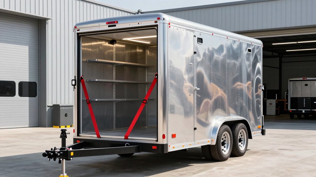 Choosing the right enclosed cargo trailer accessories starts with understanding your load capacity needs. I always recommend calculating the total weight of your cargo first. It’s wise to select accessories that can support at least 20-30% more than your maximum load for safety. For example, if you’re transporting heavy machinery weighing over 2,400 pounds, choose tie-downs and hooks rated above that weight. Versatile, adjustable accessories can help accommodate different loads without sacrificing security. It’s also essential to verify that your trailer’s anchor points and hardware are rated for the intended loads to prevent failures during transit. Regular inspections are critical to ensure accessories maintain their rated capacity over time, especially after exposure to harsh conditions. Proper load capacity planning keeps your cargo secure and your trailer safe.