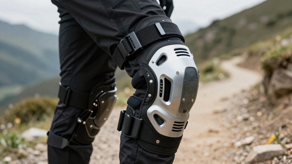 Have you ever wondered how enduro knee braces can protect you during high-impact crashes? The answer lies in their impact resistance features. Reinforced shells and impact guards are designed to withstand high-force collisions, giving you confidence on rough trails. Impact-absorbing pads and energy-absorbing inserts help disperse shock, reducing injury risk like fractures or ligament tears. Many braces meet safety standards such as CE impact certification (EN1621-1), ensuring they pass strict impact tests. Durable materials like reinforced polymers and impact-modified composites enhance durability and protection. Some braces feature removable impact guards for customization and easier maintenance. Overall, these impact resistance features are vital in safeguarding your knees during falls or collisions, providing peace of mind while pushing your limits on demanding terrain.
