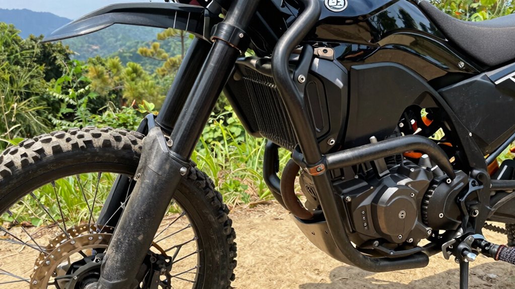 Think of engine crash bars as the sturdy branches of a tree, shielding its core during storms. Just like branches protect the crucial trunk, these bars guard your bike’s heart from life’s inevitable tumbles. Choosing the right set ensures your adventure continues unbroken, no matter the terrain. So, pick wisely, and ride with confidence—because every crash bar is a branch that keeps your journey soaring, no matter what storms come your way.