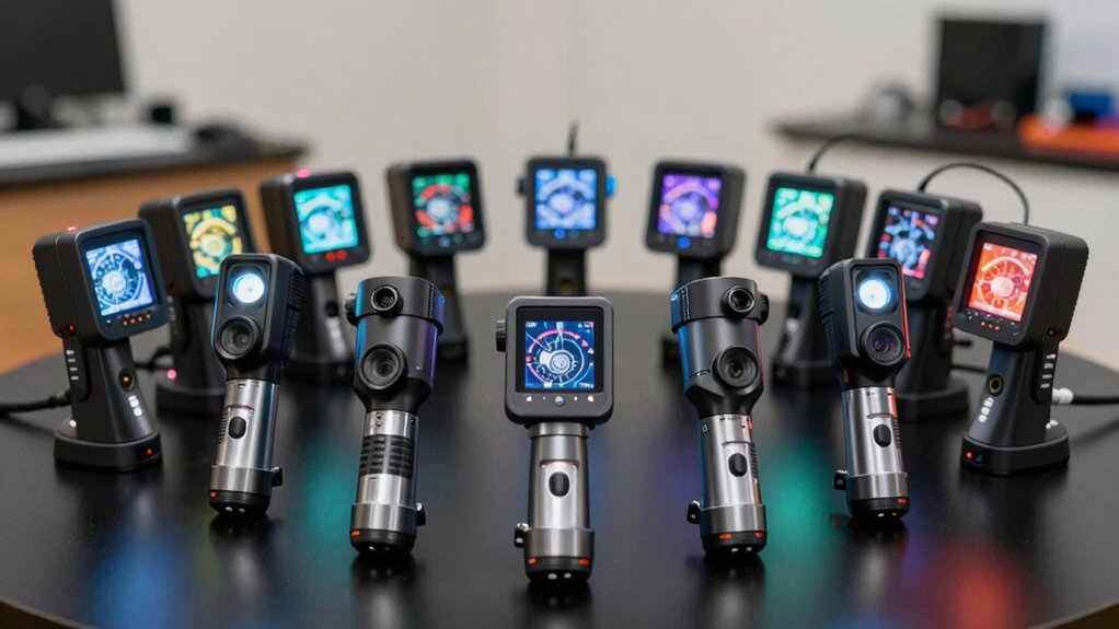 Imagine a tiny explorer venturing deep into engine depths— that’s what the battery life of these borescopes feels like. Typically, you can expect around 1.5 to 3 hours of continuous use. Some models offer quick-charging capabilities, giving you more exploration time. I’ve found that choosing a device with longer battery life guarantees I’m not constantly searching for power, making inspections smoother and less interrupted.