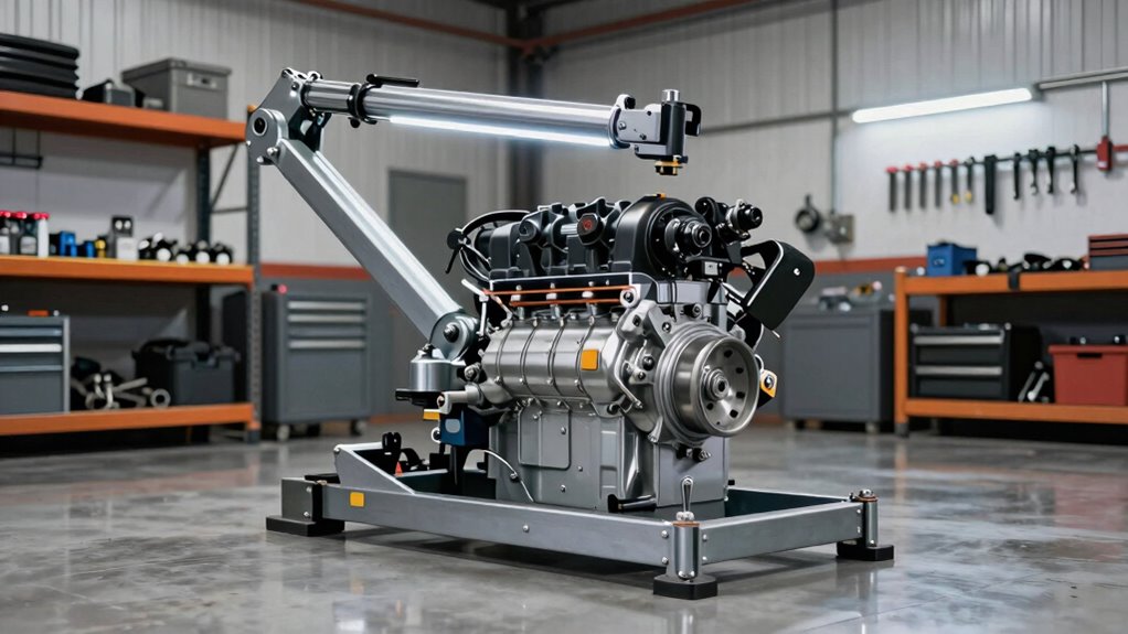 Choosing a 2-ton engine hoist that’s versatile and easy to operate can make a big difference in your workshop’s efficiency. Adjustable booms and multiple load settings let you handle different engine sizes and weights without hassle. Foldable designs save space and make transport simple, perfect for workshops with limited room. Telescoping legs and tilting mechanisms help position engines precisely, even in tight or uneven spaces. Smooth maneuverability is ensured by caster wheels with locking mechanisms, so moving and securing the hoist is effortless and safe. User-friendly controls, clear assembly instructions, and quick adjustment features mean you don’t waste time figuring out how to operate or set up your hoist. These qualities make a shop crane adaptable to various tasks and easy to incorporate into your workflow.