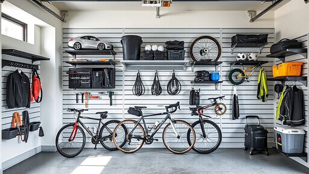 If you’re looking for the 15 best garage slatwall storage systems for 2026, I can help. These systems combine durability, versatility, and high load capacities, with options made from impact-resistant PVC, waterproof, UV-resistant, and fire-retardant materials. They’re designed for easy installation and customization, fitting various environments and storage needs. If you’re interested in details about features, sizes, and safety considerations, keep going—there’s plenty to explore to find the perfect setup.