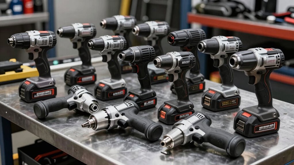 Choosing a high torque cordless impact wrench hinges on understanding its torque power and range, both of which determine how effectively it can handle tough mechanic tasks. High torque impact wrenches typically deliver between 900 ft-lbs to over 2000 ft-lbs, ensuring they can tackle rusted bolts and large fasteners with ease. A wider torque range offers greater versatility, allowing you to adjust for different tasks. The maximum torque rating reflects the tool’s ability to handle the toughest fasteners without stalling. Adjustable torque settings give you precise control, preventing over-tightening or damaging sensitive parts. Consistent high torque performance across various fastener sizes and materials is essential for professional mechanic work, ensuring reliability and efficiency on demanding projects.