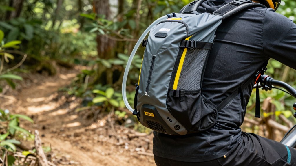 Think of a hydration backpack as a flexible suit tailored for your ride. Yes, most backpacks are designed to fit over protective gear, like a snug glove over your hand. I make sure to choose models with adjustable straps and a slim profile, so they don’t feel bulky. With the right fit, you’ll stay hydrated without sacrificing mobility or comfort, even when you’re tackling rough trails.