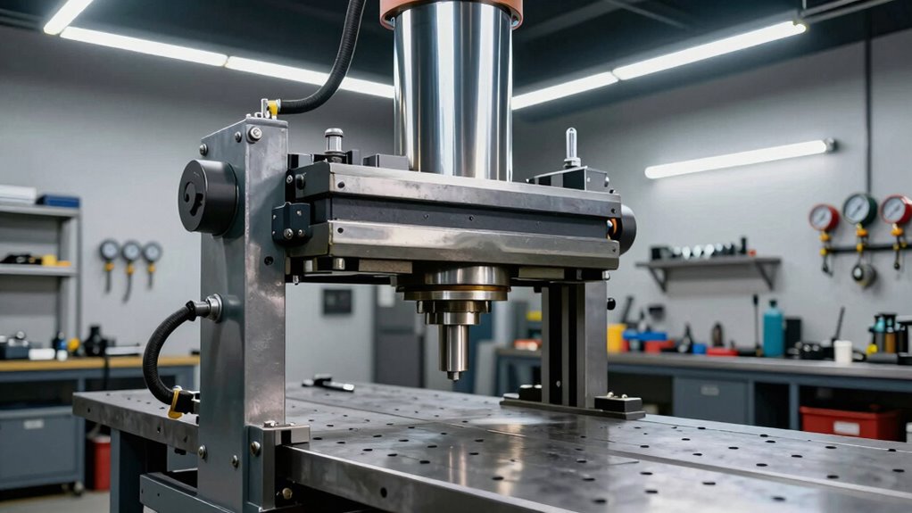 Opting for a hydraulic shop press with high-quality frame materials is essential to guarantee it withstands demanding tasks without bending or breaking. Premium materials like hardened steel or carbon steel offer superior strength, durability, and resistance to deformation under heavy loads. Using powder-coated or corrosion-resistant steel helps extend the frame’s lifespan, especially in humid or corrosive environments. Thicker gauge steel and reinforced welds contribute to the overall stability and safety of the press during intense operations. An H-frame design made from top-grade steel minimizes flexing and wobbling, ensuring consistent precision. Choosing a frame built from durable, high-grade materials reduces the risk of structural failure and profoundly extends the equipment’s lifespan, making it a reliable tool for years to come.