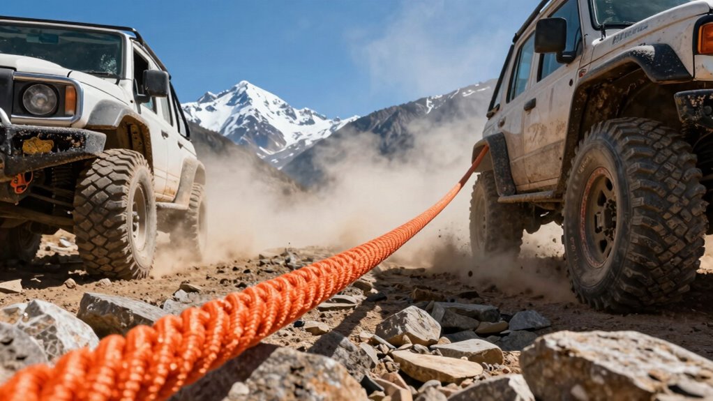 Elasticity and stretching are crucial factors I consider because they directly affect how smoothly a recovery unfolds. A higher elasticity, around 30-35%, helps absorb shocks and reduces jerks during towing, making the process safer and more comfortable. It also allows the rope to store and release kinetic energy effectively, providing a smoother experience. However, too much stretch beyond 35% can weaken the rope and compromise safety, especially under heavy loads. Proper elasticity minimizes strain on vehicle components like frames and recovery points, preventing damage. For challenging terrains like mud, snow, or rocks, a good dynamic stretch capacity is essential to handle sudden pulls without risking failure. Balancing elasticity with safety ensures a reliable, efficient recovery every time.