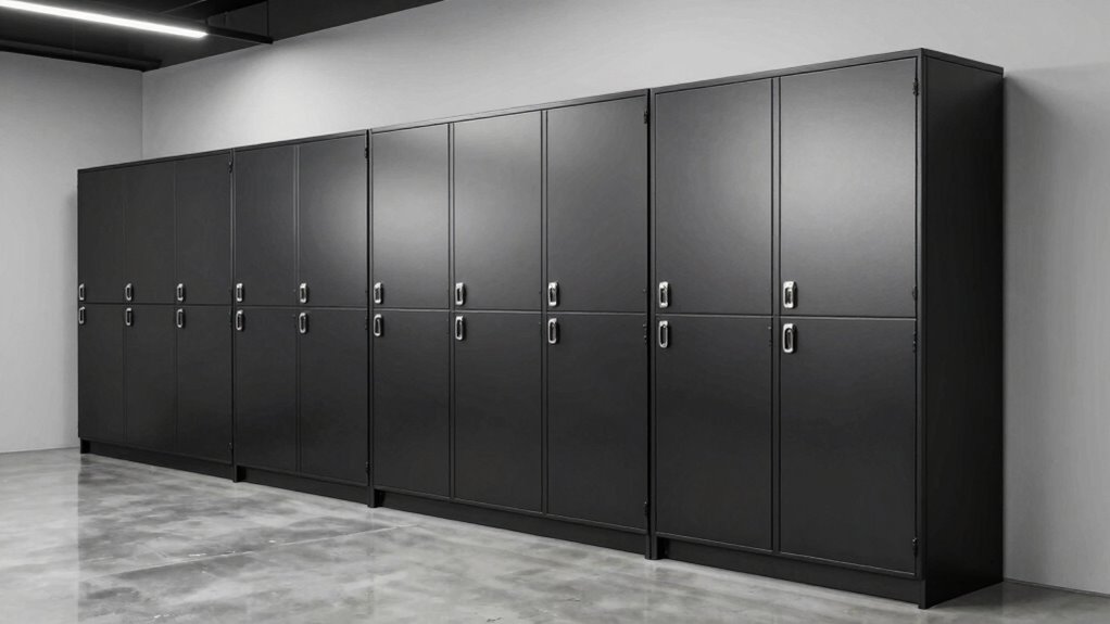 Choosing the right locking mechanism for your garage storage cabinet is essential because it directly affects security, convenience, and how well your valuables are protected. Three-point locks secure doors at multiple points, making unauthorized access much harder. If you want customizable security, padlock-compatible cabinets let you choose your own lock, giving flexibility. Magnetic locking systems use strong magnets to keep doors closed securely, often combined with other features for added safety. Each type has its advantages: three-point locks offer high security, padlocks provide customization, and magnetic locks are simple and effective. Your choice depends on what you need to protect and how easily you want to access your items. Considering these options helps ensure your valuables stay safe and accessible only to you.