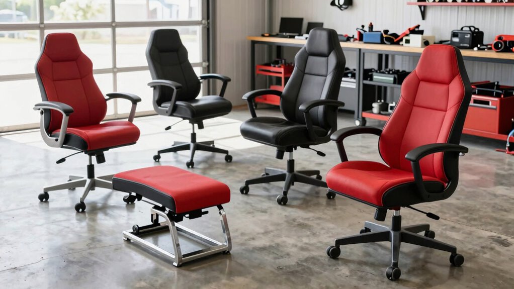 Choosing a mechanic creeper seat with the right adjustability range is essential for maintaining comfort and efficiency during repairs. These seats typically offer height adjustments from about 15 inches to over 22 inches, accommodating various user sizes and tasks. The adjustment mechanisms include pneumatic lifts, manual screw adjustments, or locking pins, each offering different levels of ease and stability. A broader adjustment range allows for more versatile working positions, helping reduce fatigue on long jobs. Some models feature increments as small as 0.5 inches, providing precise control for ideal ergonomics. Selecting a creeper seat with an appropriate range ensures you can find a comfortable, ergonomic posture for different automotive and workshop tasks, ultimately enhancing your productivity and comfort during those lengthy repair sessions.