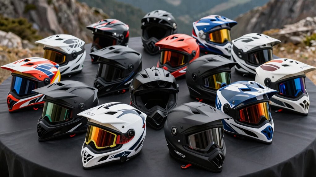 To get the most out of a modular adventure motorcycle helmet, I pay close attention to its customization options, which can considerably enhance comfort and functionality. I look for helmets with removable and adjustable components like peaks, visors, and face shields, allowing me to tailor aerodynamics and visibility for different conditions. Interchangeable padding and cheek pads help me achieve a perfect fit and added comfort. I also prefer helmets that can switch between full-face and open-face modes, offering versatile riding styles. Compatibility with accessories like Bluetooth systems, goggles, and wind deflectors is essential for a personalized experience. Additionally, I check for various shell sizes and adjustable ratchet or locking mechanisms to ensure the helmet fits securely and can be customized to my preferences.