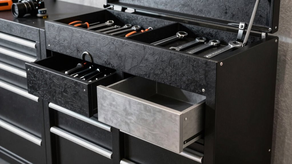 Have you ever struggled to find the right tool quickly because your storage system wasn’t organized enough? That’s why evaluating storage capacity and organization is vital. Make sure the system can comfortably hold all your tools and accessories without feeling cluttered. Look for a variety of drawers, bins, or compartments that allow easy access and keep items sorted. Adjustable or customizable dividers help maximize space and accommodate different tool sizes. It’s also smart to choose a system that supports modular expansion or reconfiguration so you can adapt as your collection grows or changes. Finally, secure locking mechanisms are essential to protect valuable tools during transport or when the system isn’t in use. Proper organization saves time and keeps your workspace safe.