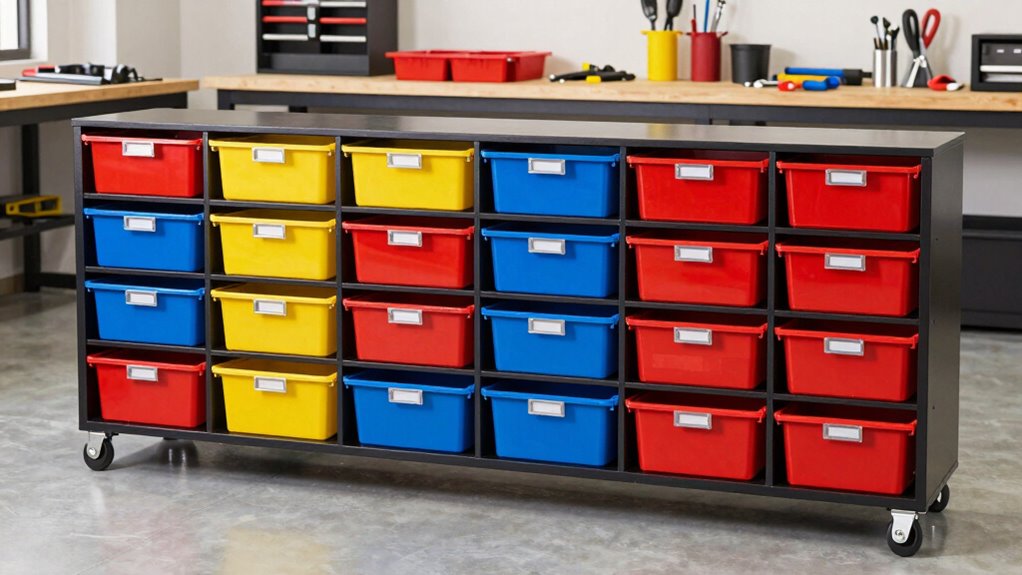 Modular systems handle heavy or bulky tools surprisingly well. I make sure to choose units with reinforced shelves and sturdy connectors, so they don’t bend or break under weight. I also distribute the load evenly across compartments, which keeps everything stable. When I need to store really heavy items, I opt for larger, dedicated modules designed specifically for weight, ensuring my tools stay organized and secure without risking damage.