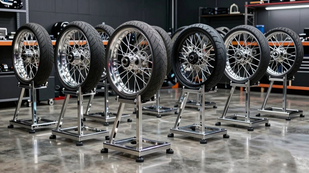 Choosing the right motorcycle wheel balancer stand can make all the difference in your bike’s performance and safety. With so many options, it’s vital to take into account features like compatibility and ease of use. Have you thought about how much smoother your ride could be with perfectly balanced wheels? Investing in a quality stand not only saves you time but also guarantees your bike’s longevity. Are you prepared to elevate your motorcycle maintenance game?