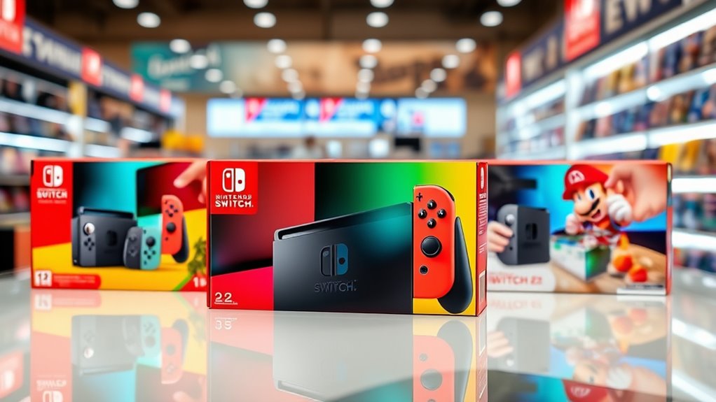 Just like catching a rare wave at the perfect moment, grabbing one of these Nintendo Switch bundles means seizing an unbeatable deal before it slips away. I’ve learned that timing is everything—waiting too long can mean missing out on the fun. With stock running low, I’d say act now, because these bundles are like limited-edition treasures, ready for someone enthusiastic to plunge into gaming adventures. Don’t wait—your next great game awaits!