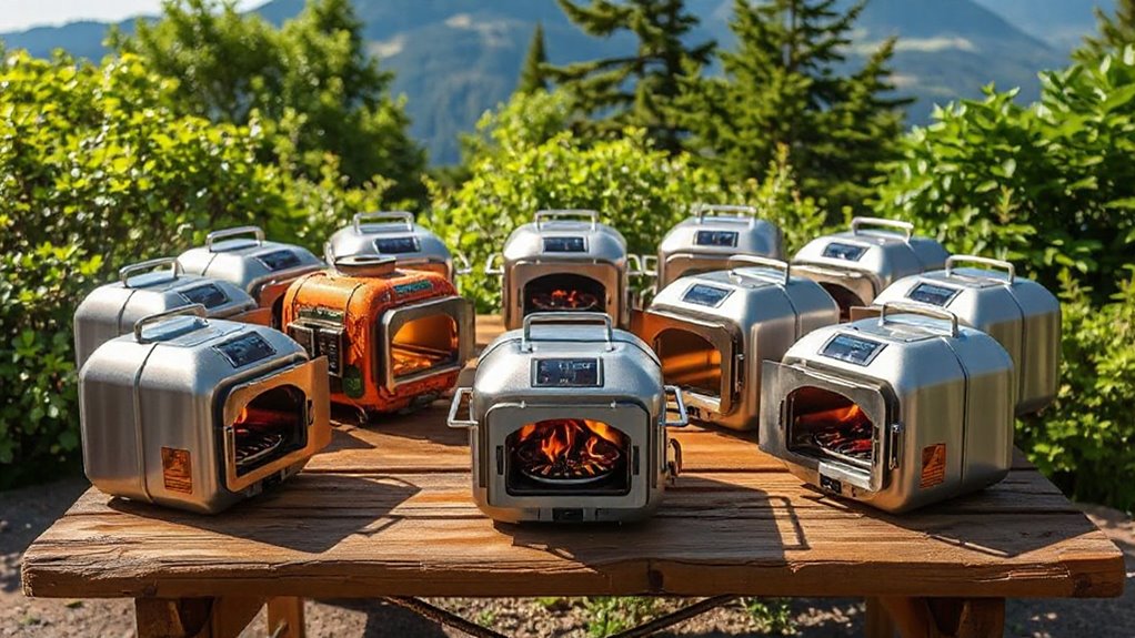 If you’re looking for the 15 best portable camp oven propane options for 2026, I’ve found models that combine durability, high performance, and easy transport. From foldable ovens and compact pizza makers to versatile stove combos, these options support various fuels and outdoor applications. With safety features and efficient heating, they’re perfect for camping, emergencies, or outdoor parties. Keep exploring as I share detailed insights on each choice to help you find the perfect fit for your adventures.