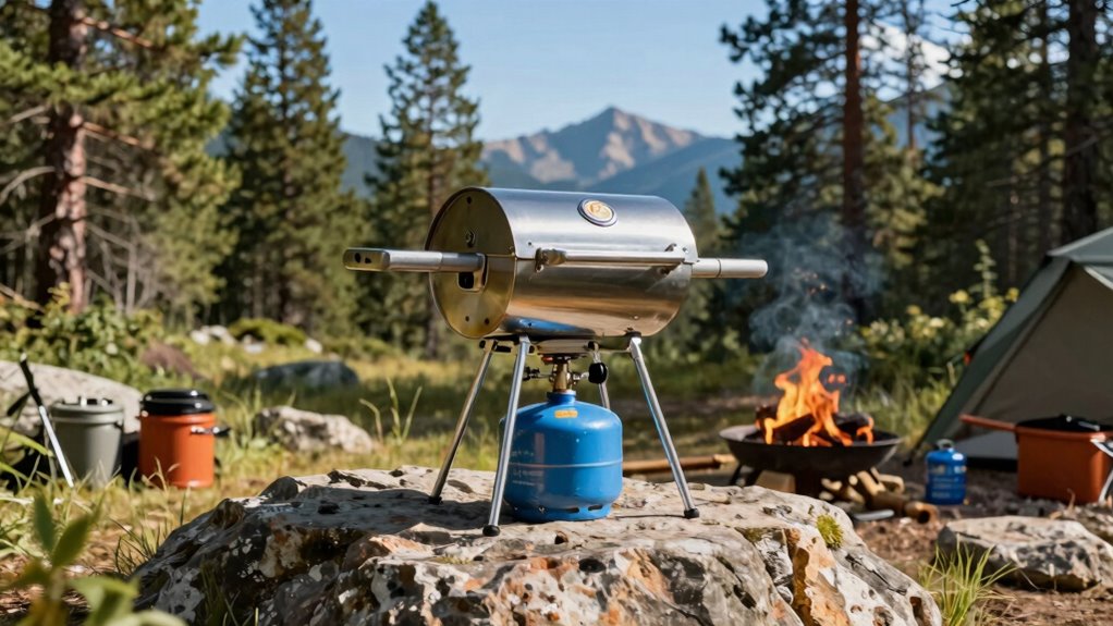 If you’re looking for the 15 best portable propane grills for overlanding in 2026, I’ve found models that combine durability, compact design, and reliable performance. From lightweight options like the Cuisinart Venture to heavy-duty grills like Megamaster and Electactic, there’s something for every adventure. They feature sturdy materials, safety features, and versatile cooking capacities. Keep going, and you’ll discover more about how these grills can enhance your outdoor cooking experience.