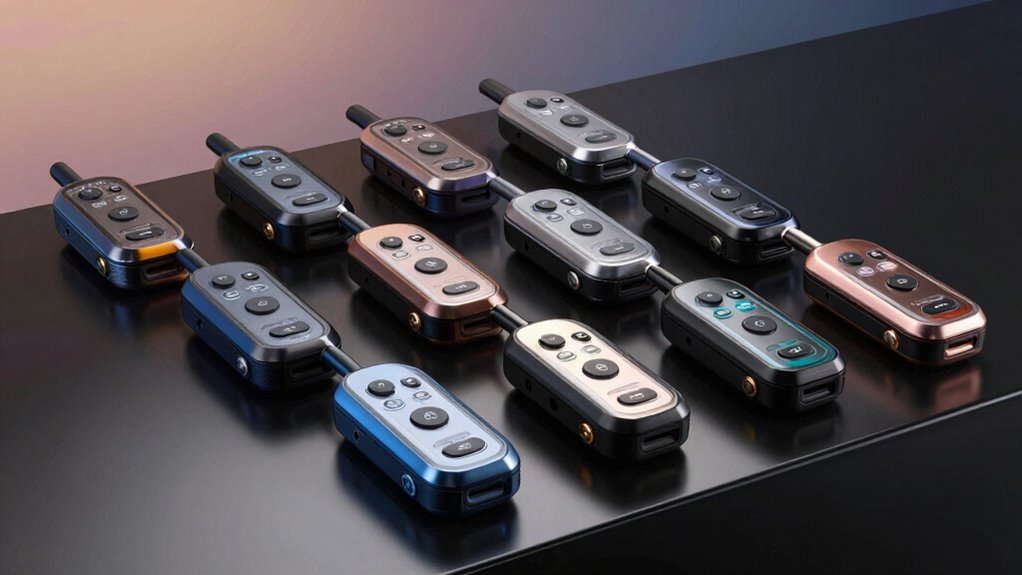 Since weather conditions can change suddenly, choosing a motorcycle intercom duo pack with strong weather resistance is essential. Look for models with an IP65 or higher waterproof rating to guarantee protection against rain, dust, and snow during your rides. If you face extreme conditions, devices with an IP67 rating can withstand immersion in water, offering extra peace of mind. Weather-resistant intercoms typically feature sealed microphones and speakers, preventing water ingress and maintaining audio clarity. Reinforced casings and corrosion-resistant connectors further boost durability, even in wet or harsh environments. Reliable weatherproof features help ensure consistent communication performance, no matter the weather challenges you encounter. Investing in these features means you can ride confidently, knowing your intercom system will perform reliably in any weather.