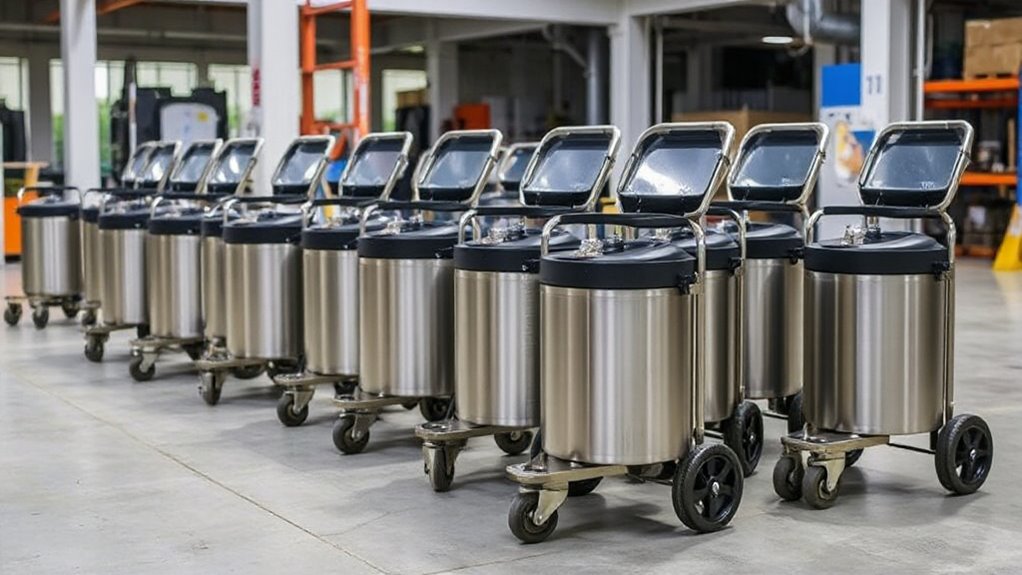 Imagine trying to squeeze a large suitcase through a narrow doorway—that’s what tight spaces can feel like when moving oil drain carts. Yes, portability is key. I’ve found that carts with compact frames and swiveling wheels make maneuvering easier, especially in cramped workshops. Look for models with adjustable handles and sturdy, smooth-rolling casters to get around corners effortlessly and access tight spots without hassle.