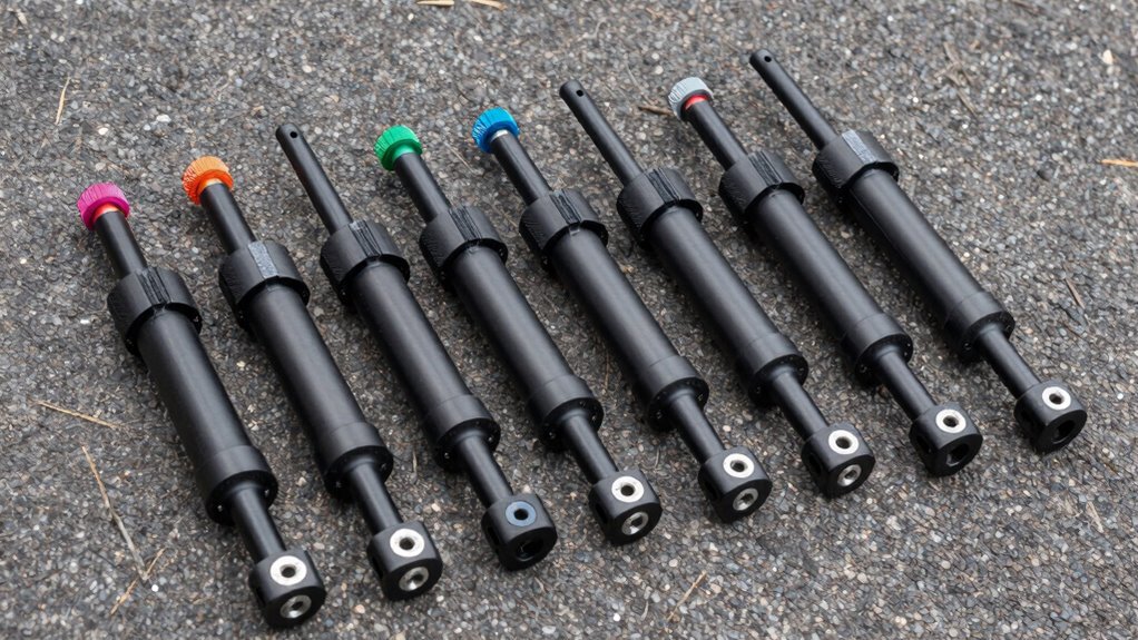 Adjustable damping features are essential because they let me set the resistance level of the stabilizer to match my riding style and conditions. With a range typically from 1 to 24, I can fine-tune how much resistance I want, which helps me stay in control whether I’m on smooth pavement or rugged trails. When riding at high speeds or performing aggressive maneuvers, adjusting damping reduces handlebar oscillations, boosting stability. It also allows me to adapt the stabilizer’s response to different terrains, making off-road riding more comfortable and safer. Plus, being able to easily modify damping levels helps decrease fatigue on long rides by smoothing out vibrations and unwanted handlebar movements. This flexibility makes the stabilizer versatile for casual street riding or intense racing scenarios.
