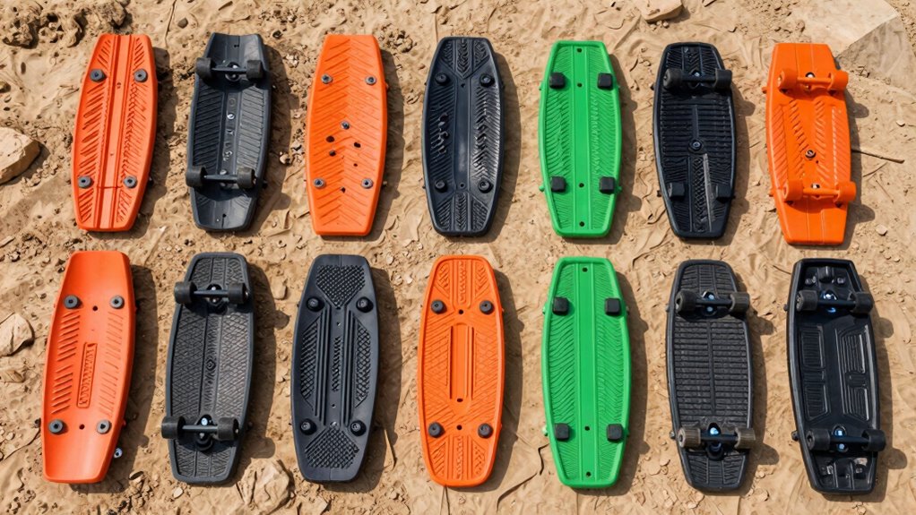 - Choose traction boards with aggressive, multi-surface grip patterns like diamond arrays and honeycomb designs for maximum traction on varied terrains.