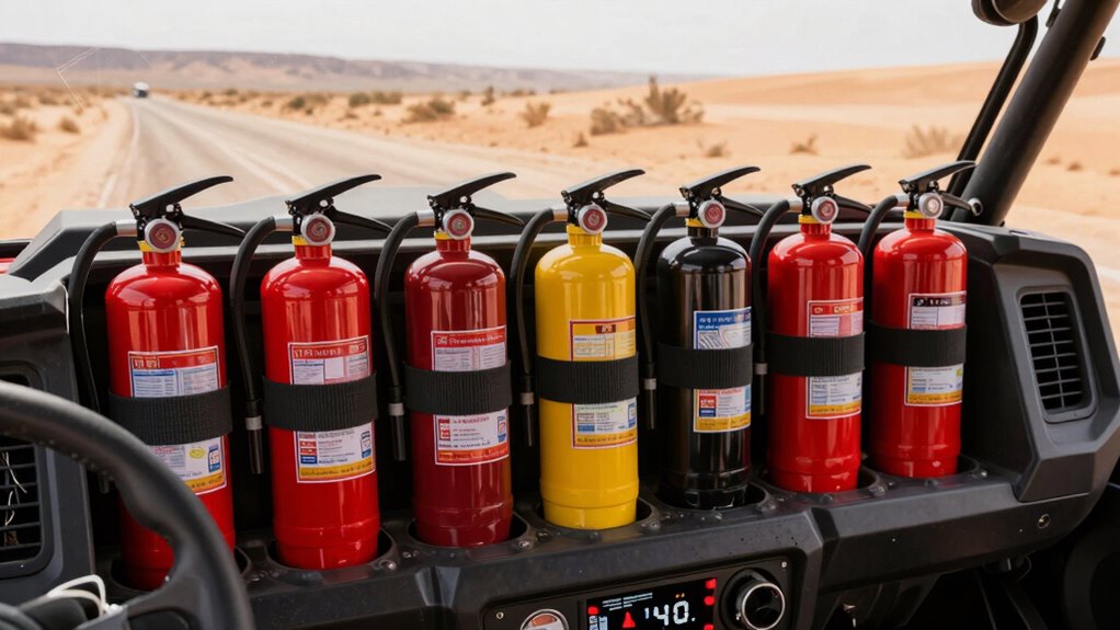 Finding the right fire extinguisher mount feels like discovering a hidden trail—suddenly, everything clicks into place. Whether it’s a quick-release design or an adjustable holder, each option keeps safety within reach, just like that perfect vantage point on a scenic ride. With these top picks, you’ll be ready for any off-road adventure, knowing your extinguisher is secure and accessible. After all, safety is what makes every ride memorable for all the right reasons.